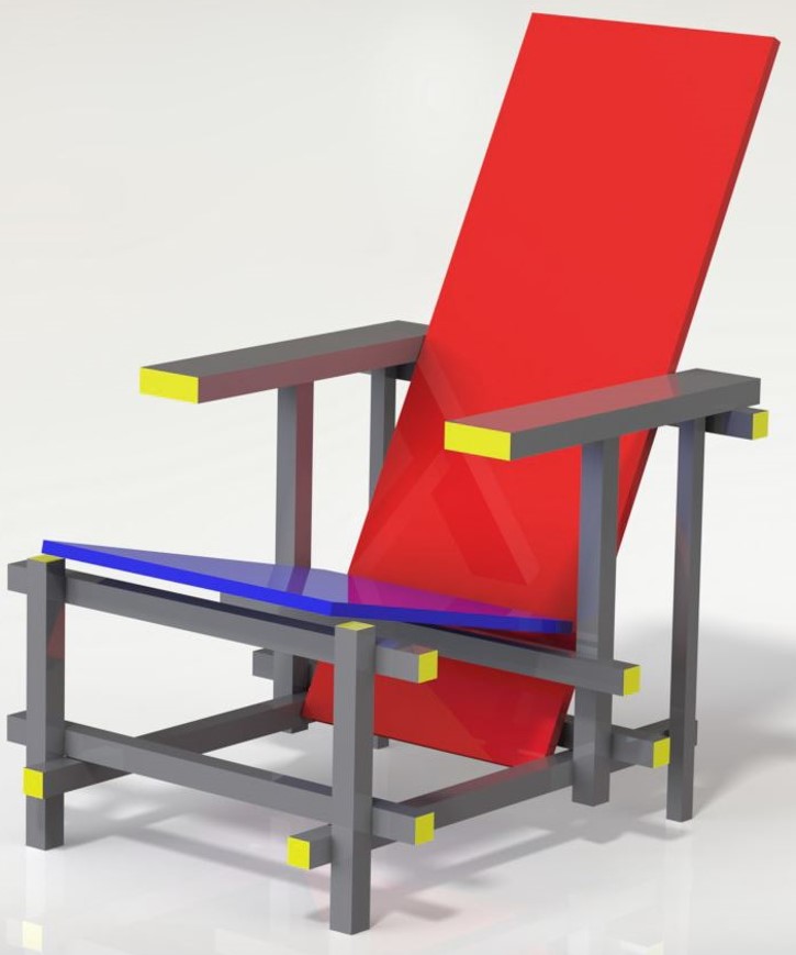 De Stijl was also most notably represented in 3D by the Red and Blue Chair by Gerrit Rietveld, a furniture designer and another main member of the group. You can find out more about him and his designs in Gerrit Rietveld by Ida van Zijl (2017.13.26).