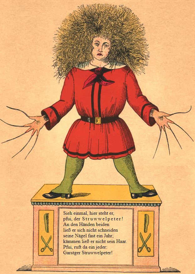 - Struwwelpeter (Slovenly or shockheaded Peter with tousled hair and uncut fingernails)