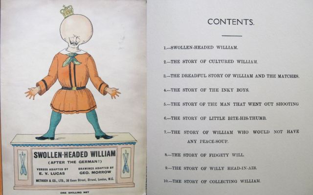 - Swollen-headed William (1919.9.299) about Kaiser Wilhelm was created in 1914 by E.V. Lucas of Punch magazine, featuring black and white drawings very close to the originals by George Morrow.