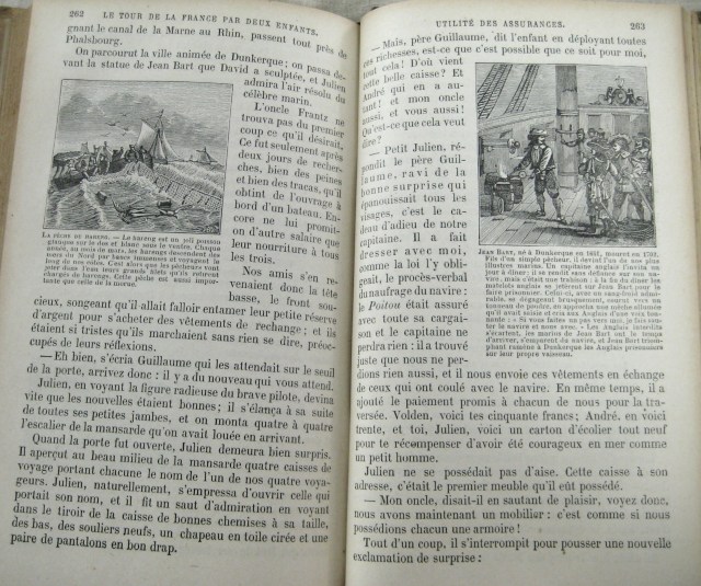 French patriotism, in a military context, is at the core of another illustration copied from the Tour de la France (although the first part of its caption, “Les marins illustres” [23] is reminiscent of the work first published by Léon Guérin in 1845). The indication “Jean Bart menace les Anglais de mettre le feu aux poudres, s’ils veulent le retenir prisonnier”, is a summary of the longer explanation accompanying the original illustration. In the Tour de la France, the visit of the children to Dunkirk is the reason for inserting an illustration and account of an heroic anecdote in the life of the 17th century naval commander and privateer from this city.