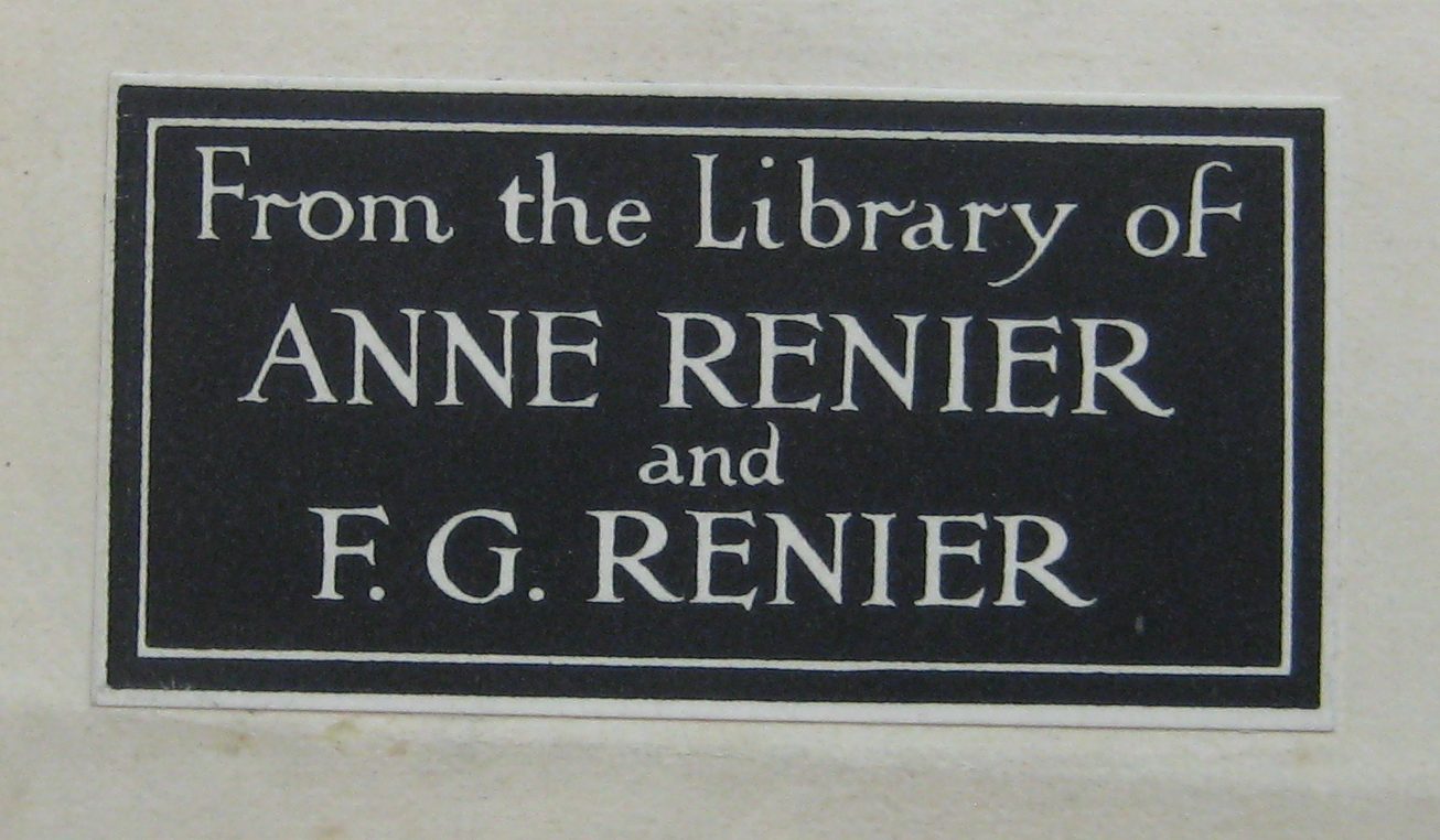 This copy of Cruikshank’s panorama of the Franco-Prussian war, recently purchased by Cambridge University Library, contains the bookplate of Anne (1911?-1988) and Fernard Gabriel Renier (1905-1988). This panorama is one of the items dispersed from the Reniers’ library. These bibliophiles donated their collection of children’s literature (containing over 80,000 books plus toys, games and printed ephemera) to the Victoria and Albert Museum in 1970. Their William Hone Manuscript Collection is now at the Adelphi University Library in New York. William Hone (1780-1842) was a printer, parodist, antiquarian, and publisher who had collaborated with George Cruikshank on the production of illustrated satirical pamphlets between 1819 and 1821.
