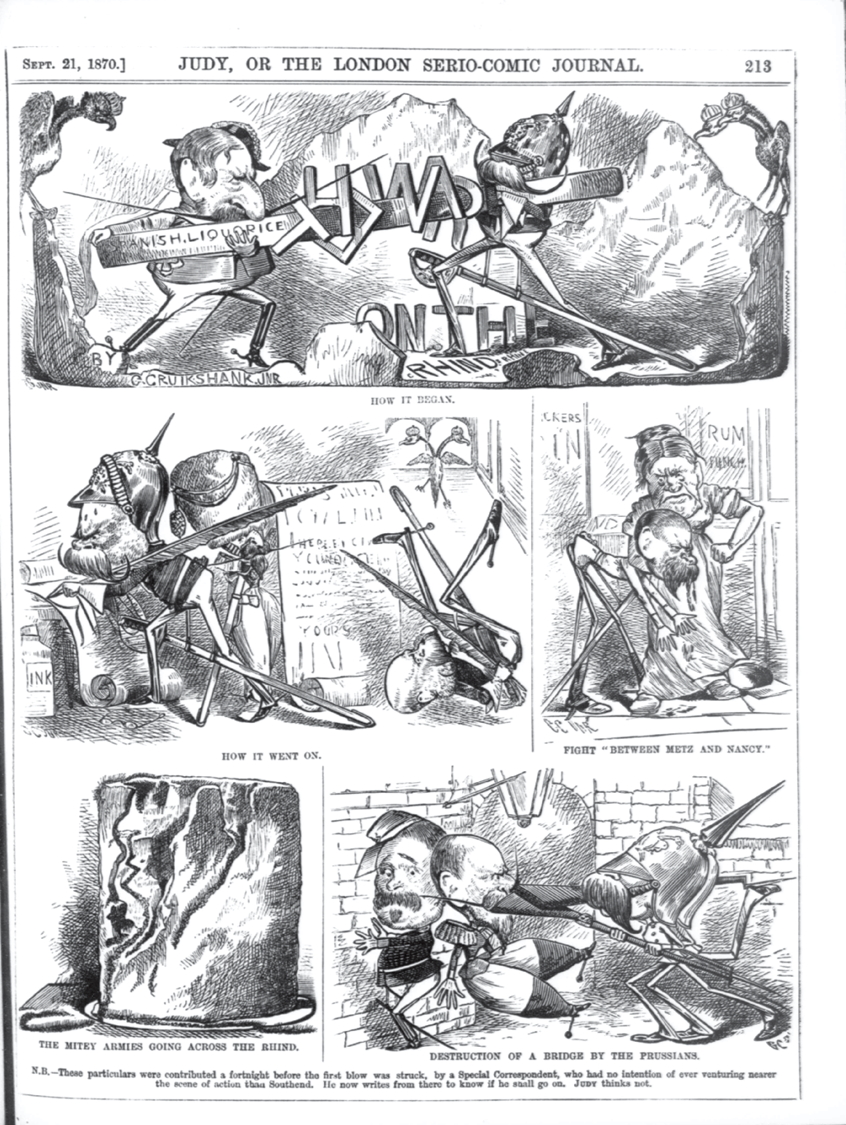 Finally, we will consider Cruikshank’s panorama in relation to the large-scale panoramas of the Franco-Prussian war (and later of the Paris Commune) displayed in London and other cities in the UK in the autumn and winter of 1870-71 as a popular form of multimedia entertainment and instruction, based on the ongoing events.