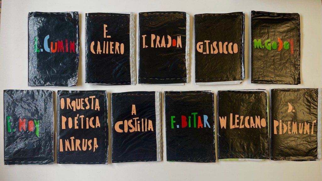 Read more: People, poetry, plastic and milkThe last additions to the collection, and the focus of this blogpost, are 11 books published by Ediciones Arroyo, based in Arroyo Leyes, a village in the province of Santa Fe, in the heart of Argentina’s vast and intensively farmed lands. Ediciones Arroyo was funded by Alejandra Bosch in 2016 and she openly recognizes the influence the cartonera movement had in its creation. It does share many characteristics with cartonera books: they are handmade, they re-utilise otherwise wasted material and they publish mainly authors not known outside of the dominant media. However, Ediciones Arroyo follow their very own creative path: their covers are made by using cleaned milk cartons and sachets (inside-out), using a characteristic collage of coloured vinyl letters to add titles or authors’ names in their covers; they publish poetry written exclusively by authors from the provinces and they are all handmade and illustrated by Alejandra and her son, Julian Bosch, in their home in Arroyo Leyes, for zero profit. But to think that the publisher works in distant isolation would be a mistake. As well as publishing, Alejandra and Julian organise a yearly poetry festival in Arroyo Leyes in close and enthusiastic collaboration with local supporters (organisations that offer venues, businesses that cater for food, neighbours that offer free accommodation). The festival gathers poets from around the country, who in turn feed into the publishing selections, by writing poems and often contributing financially to the project and also by sending milk sachets and cartons by post to contribute to the material production of the chapbooks. These are donated by village neighbours too, as a single household milk consumption couldn’t possibly supply such a prolific publisher!