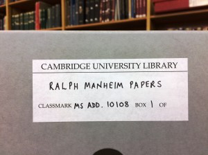In December 2015 we posted a piece about translator Ralph Manheim, written by his widow Julia Allen-Manheim. At the same time Mrs Allen-Manheim presented the Library with several of Ralph Manheim’s unpublished literary translations of texts by authors such as Arthur Schnitzler, Ödön von Horváth and Christoph Hein. (Enquire in Manuscripts Reading Room for MS Add. 10108.) The donation also includes the typescript of an unpublished lecture Ralph Manheim gave at Indiana University on November 4 1981, which gives a fascinating description of his life as a literary translator, and includes references to Michel Tournier, Rainer Maria Rilke, Adolf Hitler, Thomas Mann, Karl Jaspers, Ernst Cassirer, Bertolt Brecht, Louis Ferdinand Céline and Peter Handke. The following extracts give a flavour of the whole …